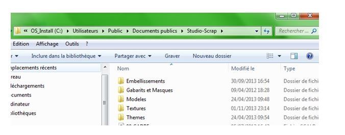 J’ai trouvé pratique de créer un raccourci, dans mon répertoire D, vers tous les dossiers de base Studio Scrap.
